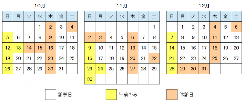 来院希望の方は日程に余裕を持ってご予約下さい。当日の予約はご希望に添えないことがあります(緊急を除く)。